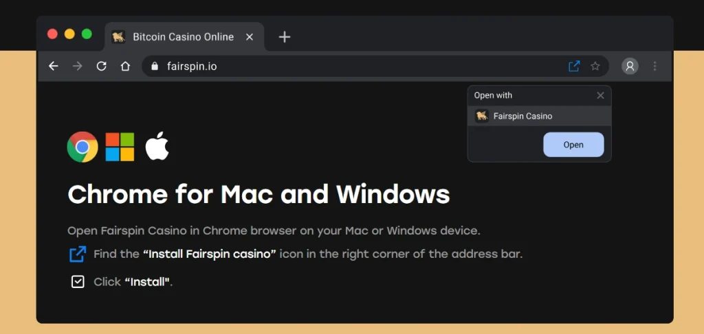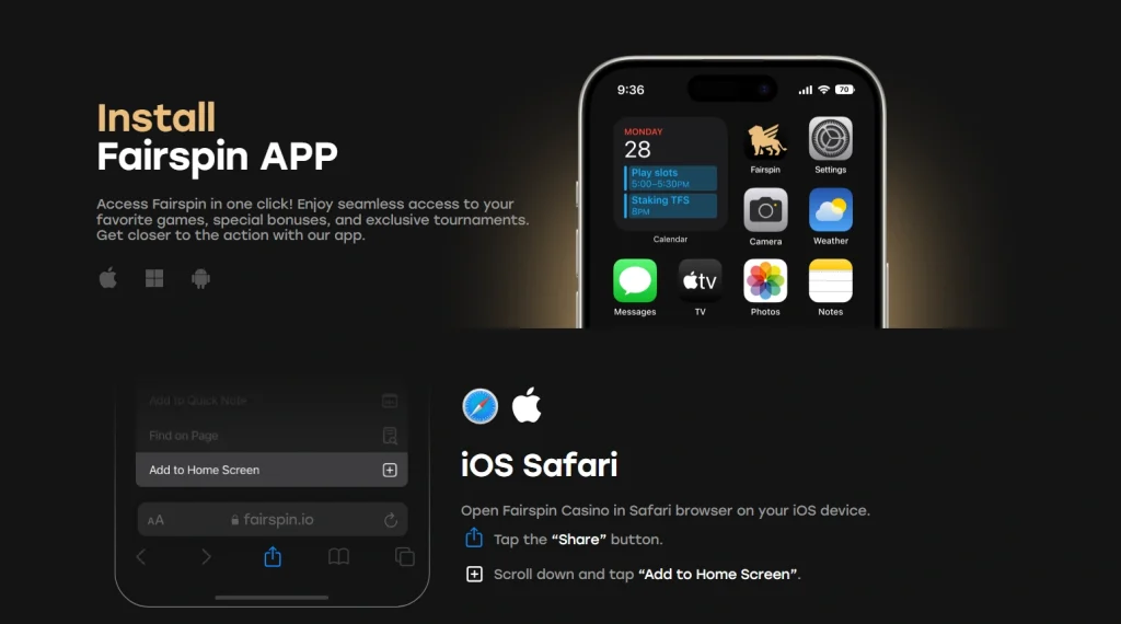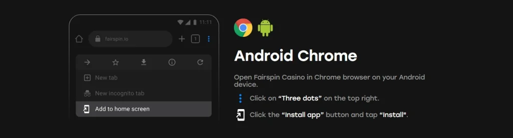 - Visita el sitio web de Fairspin Casino: Andá al sitio web desde tu celular y vas a ver el link para descargar la aplicación.
